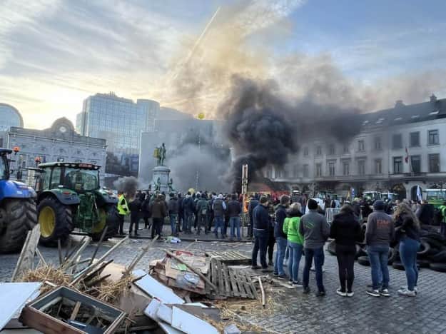 Polis bildirir ki, 1000-ə yaxın traktor Brüsselin əsas yollarını bağlayıb. Eyni zamanda fermerlər Avropa Parlamentinə yumurta atıb, binanın yaxınlığında tonqallar yandırıb, atəşfəşanlıq ediblər.