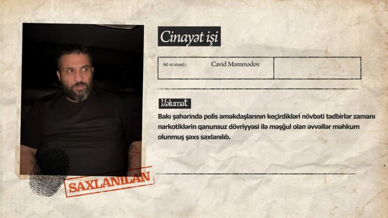 Bildirilib ki, Bakı şəhərində polis əməkdaşlarının keçirdikləri növbəti tədbirlər zamanı narkotiklərin qanunsuz dövriyyəsi ilə məşğul olan əvvəllər məhkum olunmuş Cavid Məmmədov, Almas Əflan və Əziz Məhərrəmov saxlanılıblar.