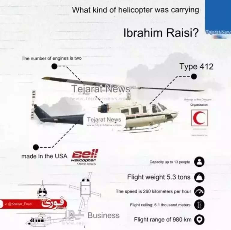 Reyting.az xəbər verir ki, İran mediası prezidentin həlak olduğu “Type 412” model helikopterin xüsusiyyətlərini açıqlayıb.