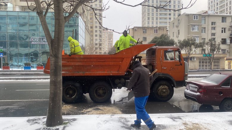 Eyni zamanda səhər saatlarından kommunal xidmətlərin əməkdaşları, işlərə cəlb olunan əlavə işçi qüvvəsi tərəfindən metro stansiyaları, avtobus dayanacaqları, piyada səkiləri, küçə boyunca ictimai-iaşə və digər obyektlərin qarşısının təmizlənməsi, buz bağlamış yerlərə duz səpilməsi və digər təmizlik işlərini həyata keçirirlər. Qarın ən çox düşdüyü ərazilər xüsusi diqqətdə saxlanılır.