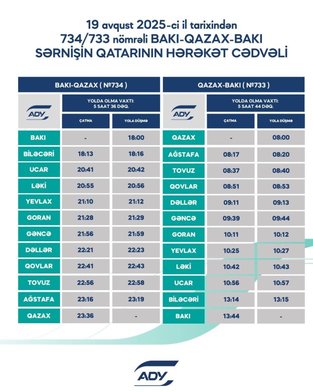 Qeyd edilib ki, Bakı-Keşlə sahəsində aparılan təmir işləri ilə əlaqədar bu gündən Bakı-Balakən-Bakı, Bakı-Qəbələ-Bakı və Bakı-Qazax-Bakı marşrutu üzrə sərnişin qatarları yenilənmiş hərəkət cədvəli ilə xidmət göstərir.