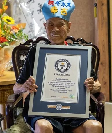 Yaponiyanın 102 yaşlı vətəndaşı üç gün ərzində Fudziyama zirvəsinə qalxmaqla, Ginnesin Rekordlar Kitabına düşüb. İlk dəfə bu cür rekord göstəriciyə nail olan yaponiyalı Kokiti Akuzava Fudziyamanın zirvəsinə qalxan ən yaşlı insandır.