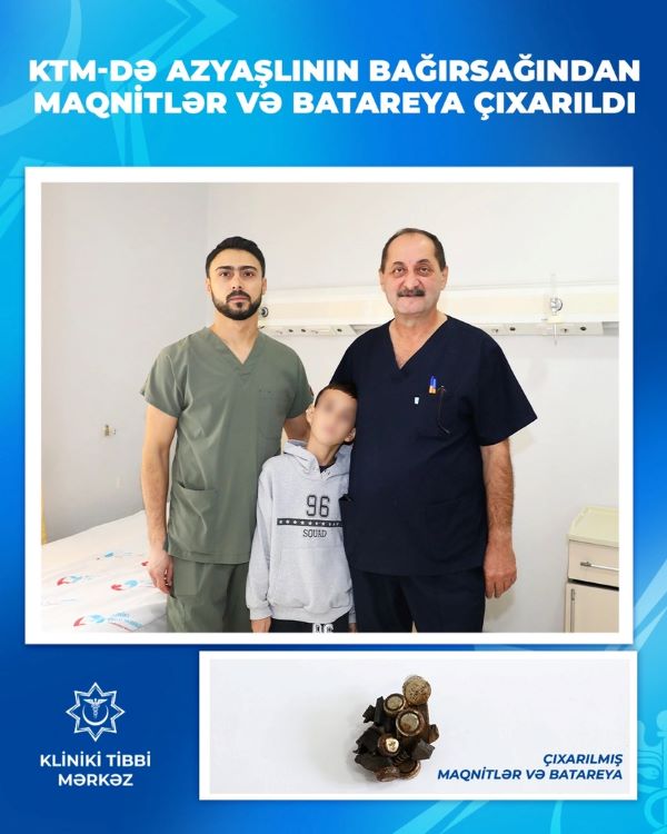 Kliniki Tibbi Mərkəzdə (KTM) 9 yaşlı uşağın bağırsağından maqnitlər və batareya çıxarılıb.