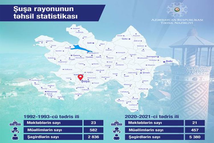 Təhsil Nazirliyi Şuşa rayonunun təhsil statistikasını açıqlayıb.