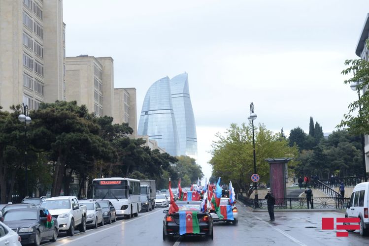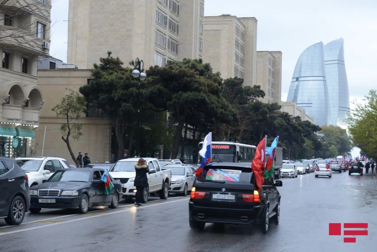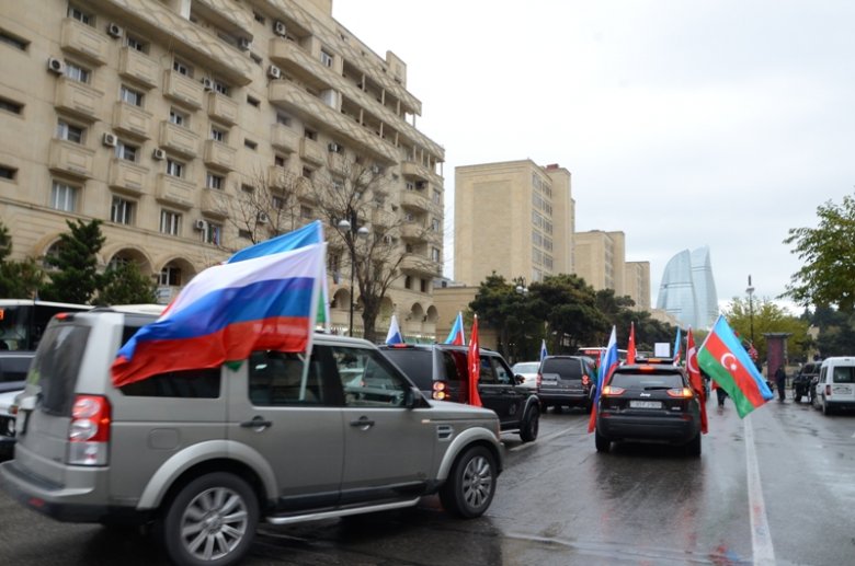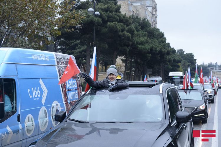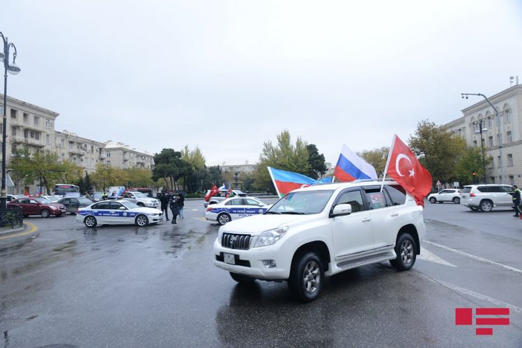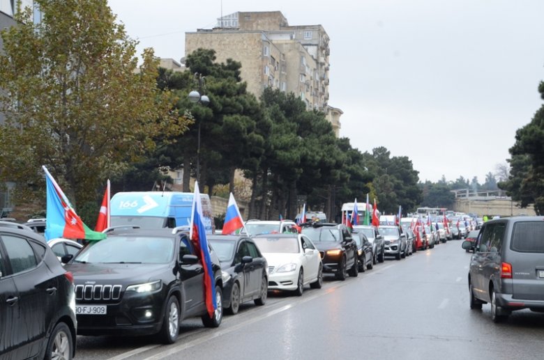 Azərbaycan, Türkiyə və Rusiya bayraqları ilə bəzənmiş avtomobillər 20 nömrəli məktəb-liseyin önündən başlayaraq Şəhidlər Xiyabanına tərəf istiqamətlənib, daha sonra şəhərin bir sıra mərkəzi küçə və prospektlərdən keçib.
