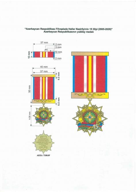 Eyni zamanda, “Azərbaycan Respublikası Fövqəladə Hallar Nazirliyinin 15 illiyi (2005-2020)” Azərbaycan Respublikasının yubiley medalının təsviri” təsdiqlənib.