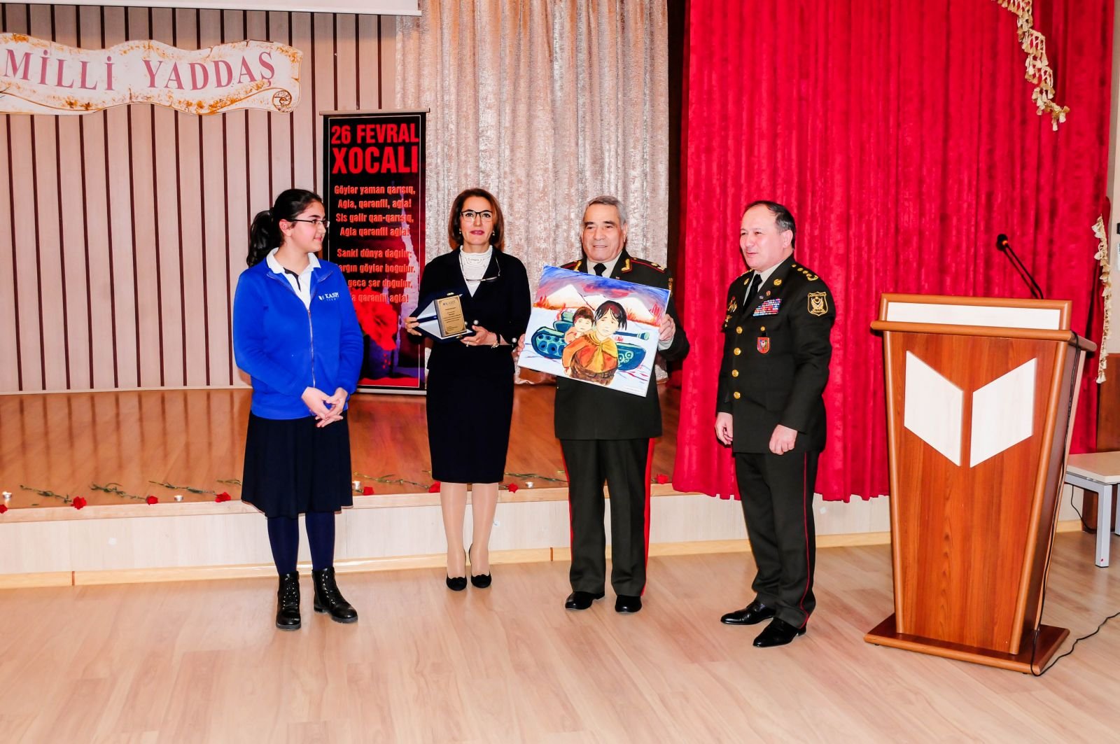 Xocalı soyqırımının 24-cü ildönümü ilə əlaqədar "Kaspi”liseyinin və Azərbaycan Respublikası Müharibə, Əmək və Silahlı Qüvvələr Veteranları Təşkilatının təşəbbüsü ilə gənclərin hərbi vətənpərvərlik ruhunda tərbiyəsi mövzusunda "Milli yaddaş” adı altında tədbir keçirilib.