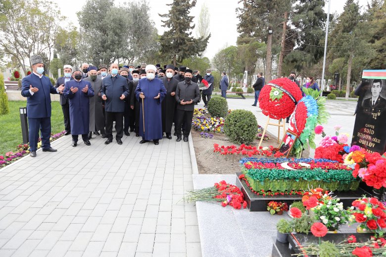 Vətənin ərazi bütövlüyü uğrunda canından keçən bərdəlilərin xatirəsi ehtiramla yad edildi, Qurani-Kərimdən ayələr tilavət olundu, ruhlarına dualar oxundu. Tarixi qələbəmizdə payı olan şəhidlərin məzarı önündə onların ailə üzvlərilə görüşən Şeyxülislam həzrətləri valideynlərə başsağlığı verdi, belə qəhrəman böyütdüklərinə görə minnətdarlığını bildirdi.