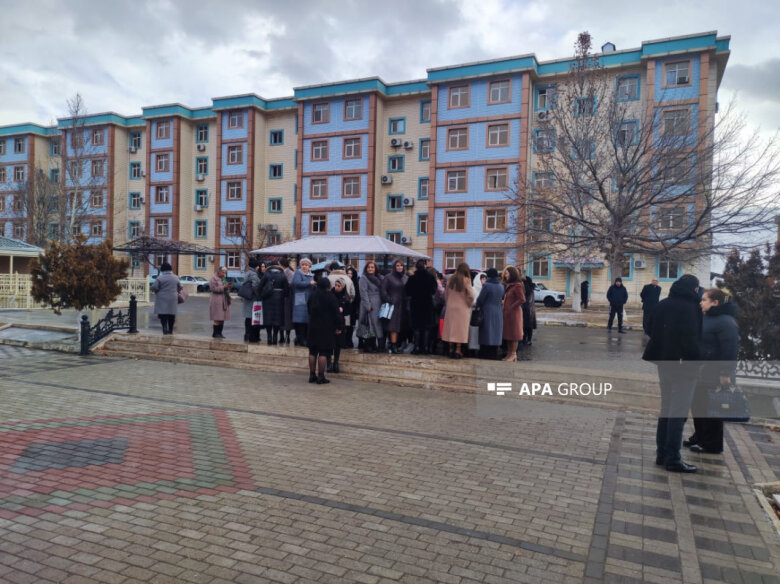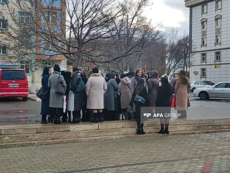 Reyting.az APA-ya istinadla xəbər verir ki, bugün səhər saatlarından müəllimlər məktəbin qarşısına toplaşıblar.