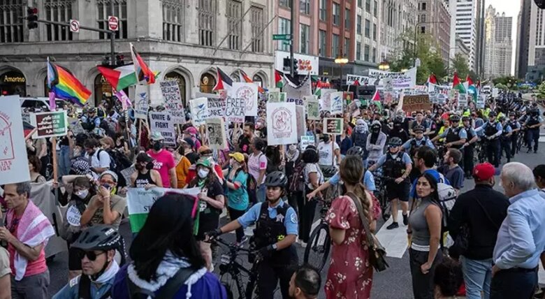 Demokrat Partiyasının prezidentliyə namizədini rəsmən elan edəcəyi dörd günlük qurultayın başlamasına bir neçə saat qalmış Çikaqoda keçirilən etiraz aksiyasında nümayişçilər Kamala Harrisdən Qəzzada müharibəyə son qoymağı tələb ediblər.