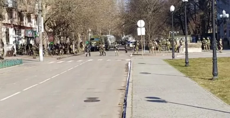 Şəhər şurasının əməkdaşı deyib ki, saat 16:30-da Rusiya Federasiyasının hərbçiləri binaya daxil olub, əməkdaşlardan binanı tərk etməyi tələb ediblər. Binadan Ukrayna bayrağını götürüblər. İnsanlara heç bir izahat verilməyib.