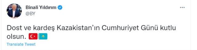 Binəli Yıldırım Qazaxıstana təbrik mesajı ünvanlayıb