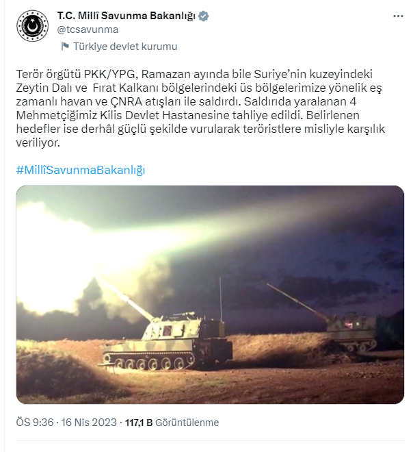 Reyting.az xəbər verir ki, bu barədə Türkiyə Milli Müdafiə Nazirliyi məlumat yayıb.