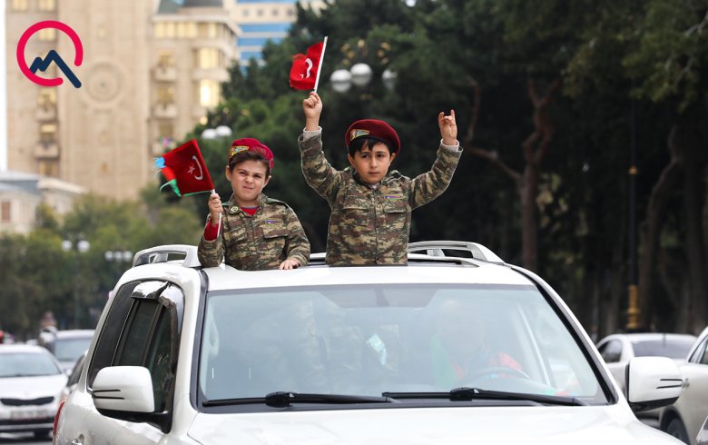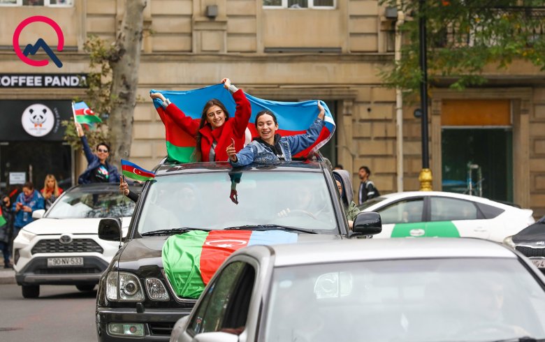 Reyting.az xəbər verir ki, Şuşa zəfəri münasibətilə Bakı şəhərində də izdiham yaşanıb. Əllərində bayraqlar, güllər olan sakinlər şəhərin müxtəlif yerlərində qələbə yürüşü keçiriblər.
