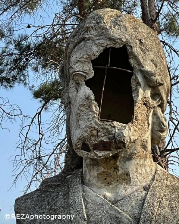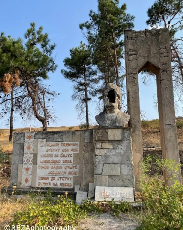 R. Diqqəti bu dəfə Azərbaycanın dahi şair Nizami Gəncəvinin dağıdılmış büstünün fotolarını paylaşıb.