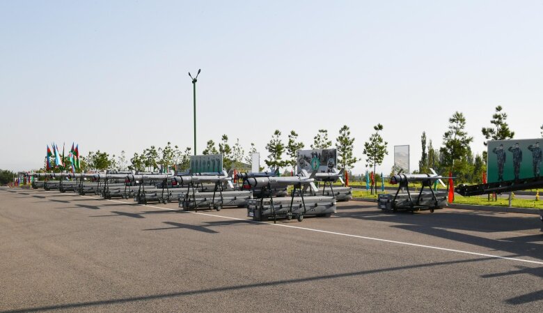 Dövlətimizin başçısına, həmçinin “Qazax” Əlahiddə Sərhəd Diviziyasının xidməti istifadəsinə verilmiş silah arsenalı, döyüş texnikaları, yüksəkkeçidli nəqliyyat vasitələri, zirehli və avtomobil texnikası, tibb avtomobilləri nümayiş etdirilib.