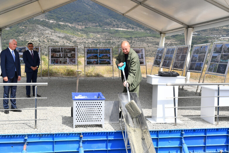 Sonra prezident İlham Əliyev kompleksin təməlini qoyub.