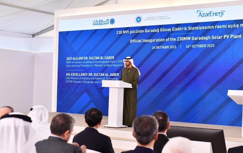 Birləşmiş Ərəb Əmirliklərinin sənaye və qabaqcıl texnologiyalar naziri Sultan Əhməd Əl-Cabir mərasimdə çıxış edib.