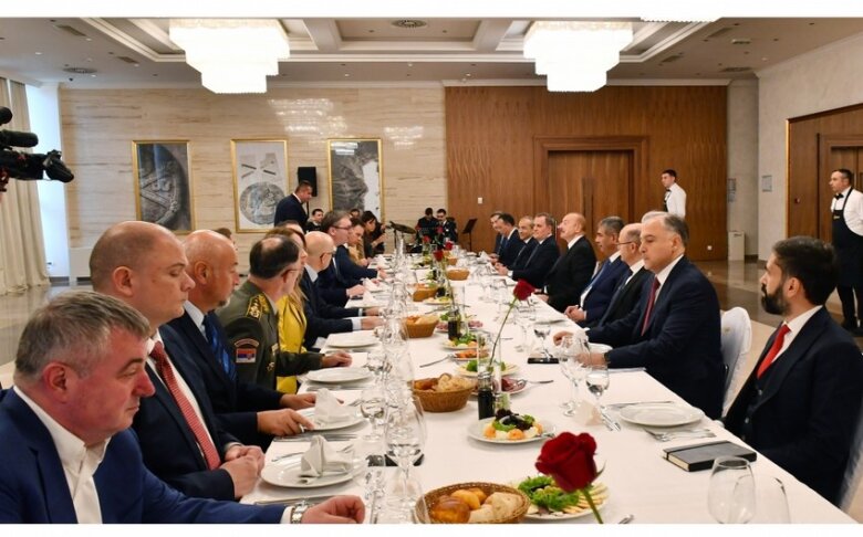 Daha sonra prezident İlham Əliyevlə Serbiya Respublikasının Prezidenti Aleksandar Vuçiç arasında birgə nahar əsnasında geniş tərkibdə görüş keçirilib.