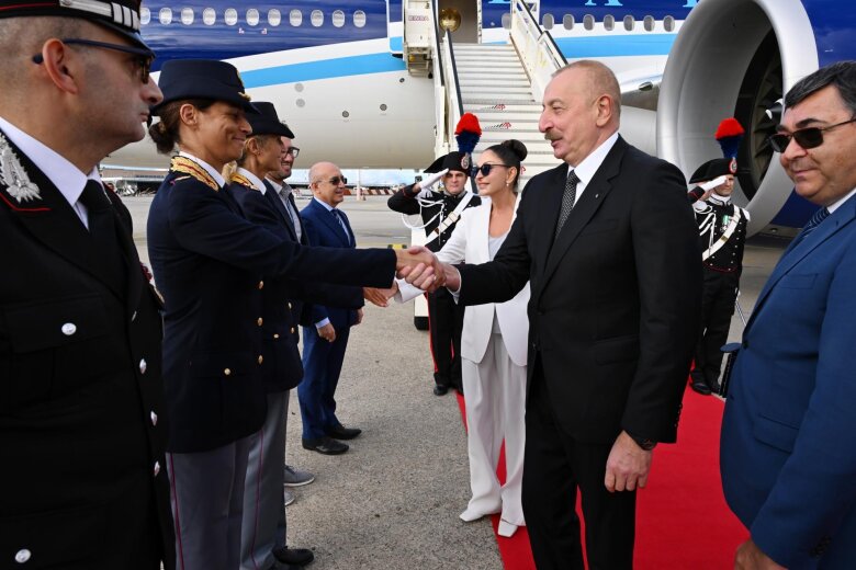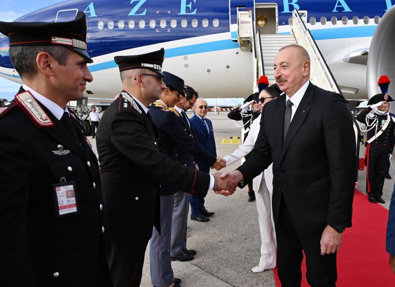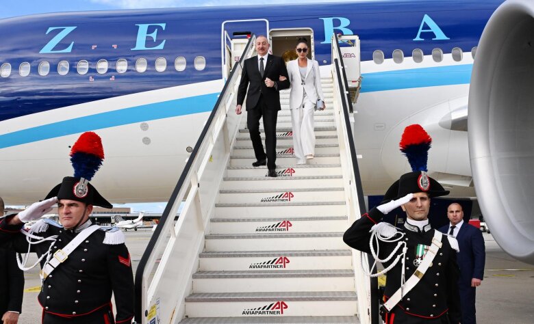 Reyting.az xəbər verir ki, Milanın Malpensa hava limanında dövlətimizin başçısını və birinci xanımı İtaliyanın rəsmi şəxsləri qarşılayıblar.
