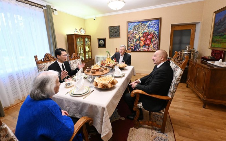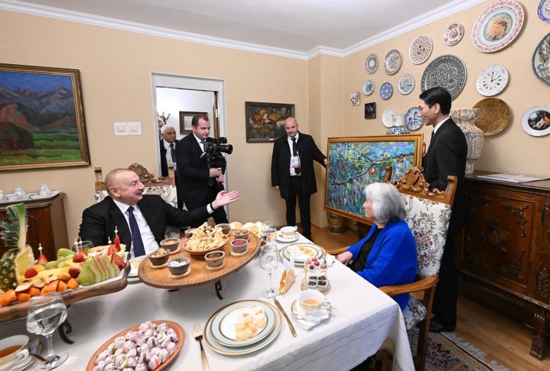 Daha sonra prezident İlham Əliyev və Çingiz Aytmatovun ailə üzvləri birgə çay süfrəsi arxasında söhbət ediblər.