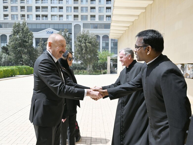 Reyting.az xəbər verir ki, dövlət başçısını və birinci xanımı Azərbaycanda Katolik Kilsəsinin apostol prefekti, yepiskop Vladimir Fekete qarşılayıb.