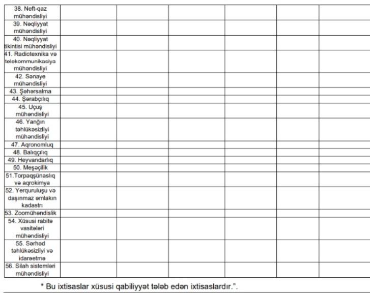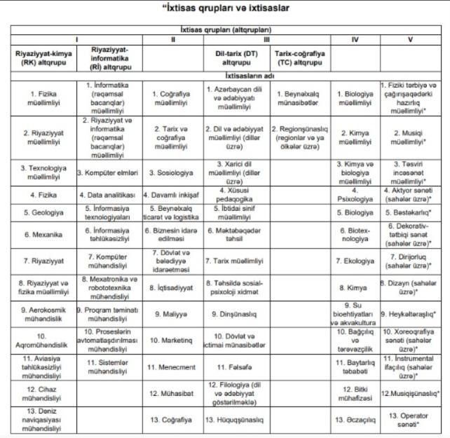 Dəyişikliklə, “İxtisas qrupları və ixtisaslar” yeni redaksiyada verilib(Cədvəl aşağıda verilib - Red.)
