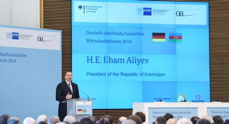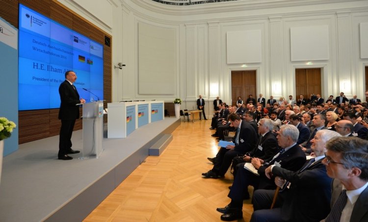 Forumda çıxış edən prezident İ.Əliyev Almaniya ilə Azərbaycanın yaxşı tərəfdaş olduğunu, ölkələrimiz arasında fəal siyasi dialoqun aparıldığını bildirib. Münasibətlərin iqtisadi əlaqələrin inkişafına da təsir etdiyini deyən dövlət başçısı bildirib ki, Azərbaycan iqtisadiyyatının inkişafı üçün təhlükəsizlik və sabitlik vacibdir.