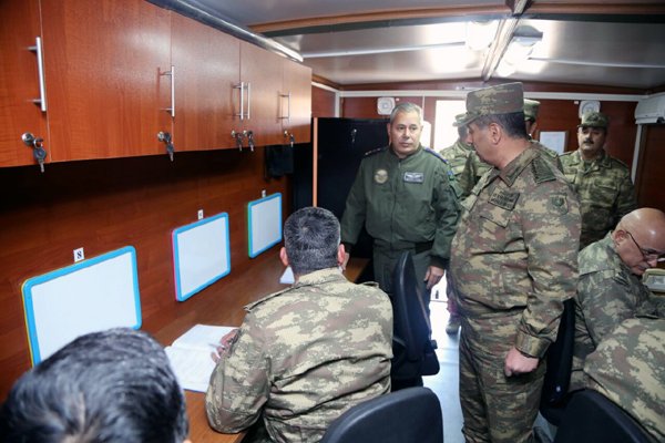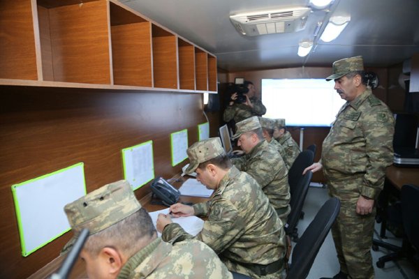 Müdafiə naziri, general-polkovnik Zakir Həsənov təlimlərin səhra şəraitində yaradılmış əsas komanda məntəqəsində olub.