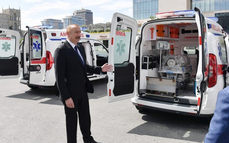 Bildirilib ki, koronavirusla mübarizə çərçivəsində tibbi xidmətlərin keyfiyyətinin daha yüksək səviyyəyə çatdırılması, bu sahədə maddi-texniki bazanın möhkəmləndirilməsi, o cümlədən yeni təcili tibbi yardım avtomobillərinin təminatı vacib amillərdəndir.
