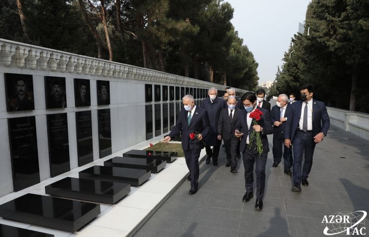 Reyting.az xəbər verir ki, sonra Şəhidlər xiyabanına gələn qonaq ölkəmizin azadlığı və ərazi bütövlüyü uğrunda mübarizədə canlarından keçmiş qəhrəman Vətən övladlarının xatirəsini yad edib, onların məzarlarının üzərinə və “Əbədi məşəl” abidəsinin önünə gül düzüb.