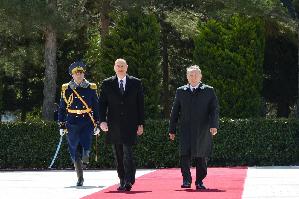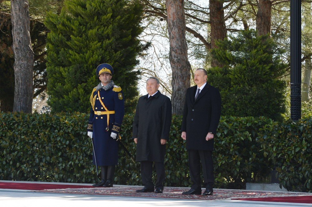Azərbaycan prezidenti İlham Əliyev Qazaxıstan prezidenti Nursultan Nazarbayevi qarşılayıb.