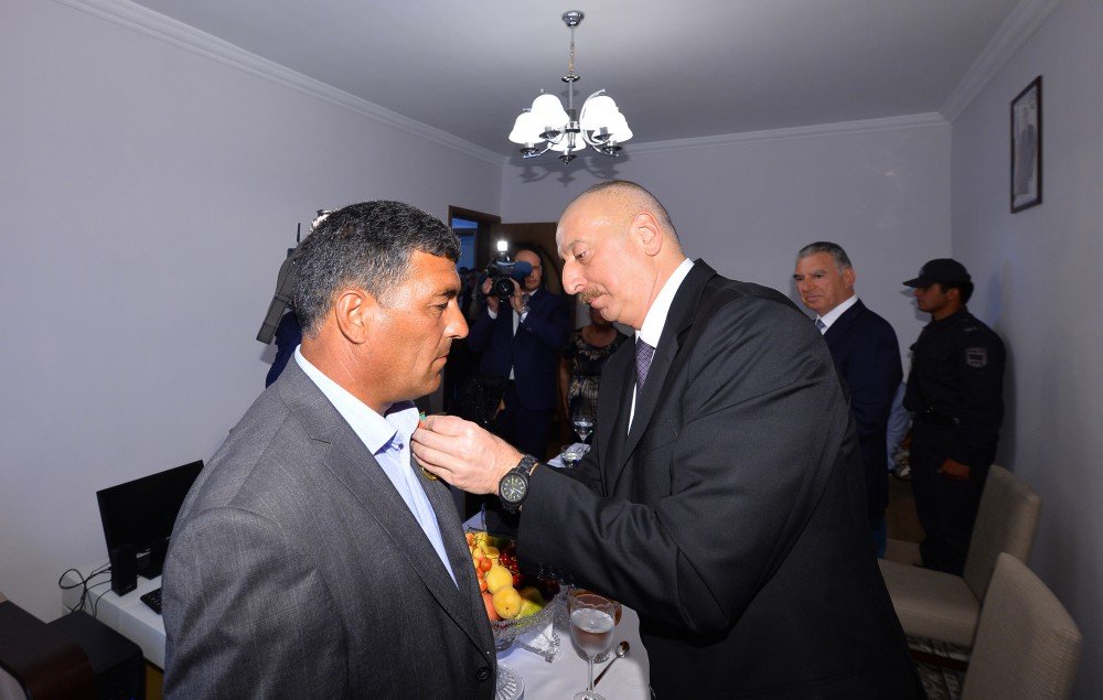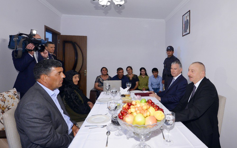 Sonra prezident İlham Əliyev Cocuq Mərcanlı kəndinin bərpası çərçivəsində görülən işlərlə tanışlıq zamanı kənd sakini Oqtay Həziyevin evində olub. Səkkiz nəfərlik bu ailə təhlükəli olmasına baxmayaraq, 1994-cü ilin aprelindən kənddə yaşayır və bütün məcburi köçkünlərə nümunə olmaqla yanaşı, əsl vətənpərvərlik və fədakarlıq göstərir. Prezident İlham Əliyev Oqtay Həziyevin ailə üzvləri ilə söhbət edib.