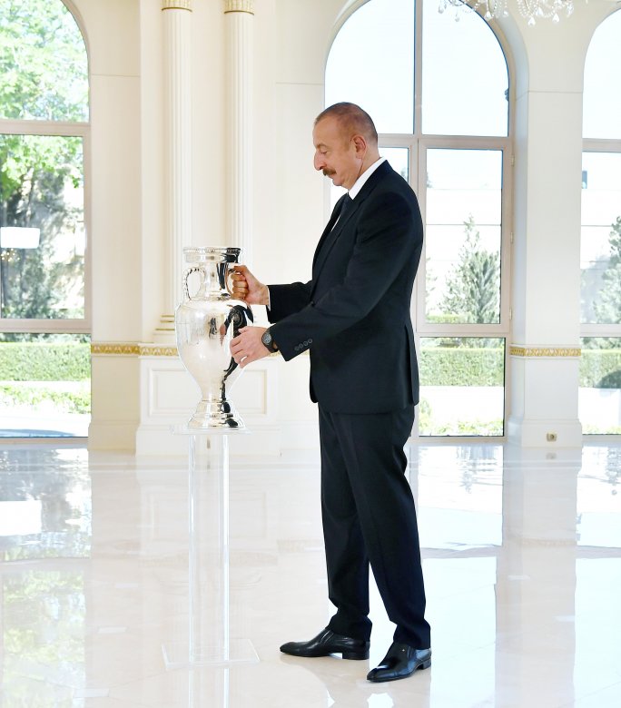 Reyting.az xəbər verir ki, mayın 7-dən 9-dək Bakıda nümayiş olunacaq Avropa çempionatının kuboku Prezident İlham Əliyevə təqdim edilib.