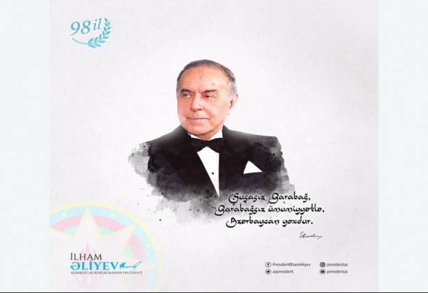 Prezident İlham Əliyevin rəsmi "Facebook" səhifəsində Ümummilli Lider Heydər Əliyevin anadan olmasının 98-ci ildönümü münasibətilə paylaşım edilib.