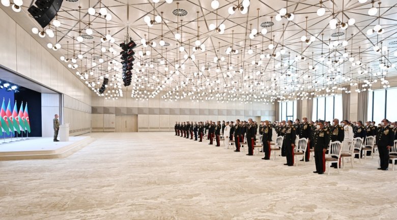 Aprel döyüşləri Ermənistana dərs olmadı. Ondan iki il sonra Naxçıvan əməliyyatı nəticəsində biz böyük ərazini götürmüşdük və gücümüzü, peşəkarlığımızı bir daha göstərmişdik. O da dərs olmadı. Nəhayət, İkinci Qarabağ müharibəsi elə dərs oldu ki, onlar bu dərsi əbədi yadda saxlayacaqlar. İkinci Qarabağ müharibəsi bizim şanlı tariximizdir. Bu tarix Azərbaycan xalqının ürəyində əbədi yaşayacaq. Bu, ədalətin təntənəsi idi. Bu, qürurun təntənəsi idi, milli ləyaqətin təntənəsi idi, Azərbaycan xalqının əyilməz ruhunun təntənəsi idi. Biz bütün gücümüzü səfərbər edib bu müharibədə Qələbə qazanaraq düşməni torpaqlarımızdan qovduq. Düşməni elə rəzil vəziyyətə qoyduq ki, onlar bizim qabağımızda diz çökdülər, ağ bayraq qaldırdılar və məcbur olub kapitulyasiya aktına imza atdılar. Halbuki, müharibə dövründə mən dəfələrlə öz çıxışlarımda və müsahibələrimdə deyirdim ki, biz dayanmağa hazırıq. Mən Prezident kimi bəyan edirəm, Ermənistan rəhbəri şəxsən bizə tarix versin, nə vaxt bizim torpaqlarımızdan erməni hərbi birləşmələri çıxır, o tarixi bizə versin və biz müharibəni dayandırırıq. Ancaq Ermənistan tərəfi yenə də bu şansı itirdi. Müharibə nəticəsində Ermənistan ordusu məhv edilib. Mən bu rəqəmləri səsləndirmişdim, siz yaxşı bilirsiniz. Siz Ermənistan ordusunu məhv etmisiniz, Ermənistan ordusu yoxdur -336 tank məhv edilib, ya da ki, qənimət kimi götürülüb. Səkkiz S300 qurğusu məhv edilib, onların hava hücumuna qarşı digər qurğuları məhv edilib, artilleriya qurğuları. Yəni, Ermənistan ordusu yoxdur. Müharibə dövründə, - artıq bu da sirr deyil, - vasitəçilər Ermənistana xəbər göndərmişdilər ki, dayanmaq lazımdır, tarix verin Azərbaycana. Ancaq onlar bundan da imtina etdilər. Biz Şuşanı işğalçılardan azad edəndən sonra məcbur olub noyabrın 9-dan 10-na keçən gecə kapitulyasiya aktına imza atdılar.