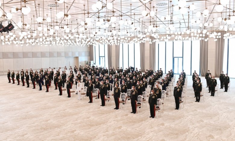 Onu da bildirməliyəm ki, müharibə dövründə bəzi ölkələr, BMT Təhlükəsizlik Şurasının üzvləri BMT Təhlükəsizlik Şurasında bizim əleyhimizə bəzi təşəbbüslər irəli sürmüşdülər və o təşəbbüslərin çox mənfi fəsadları ola bilərdi. Bu, bir daha Azərbaycana qarşı ədalətsizliyin növbəti təzahürü idi. Çünki biz öz torpağımızda vuruşurduq, öz ərazi bütövlüyümüzü bərpa edirdik. Bizim işimiz haqq işi idi. Buna baxmayaraq, ermənipərəst dairələr və ölkələr bizə qarşı tamamilə reallığı əks etdirməyən qətnamə qəbul etdirməyə çalışırdılar. Kim bizi müdafiə etdi? BMT Təhlükəsizlik Şurasında təmsil olunan Qoşulmama Hərəkatına üzv ölkələr. Onlar bizi müdafiə etdi və biz onlara minnətdarıq. Məhz onların səyi nəticəsində anti-Azərbaycan bəyanat qəbul edilmədi. Biz buna nəyin hesabına nail olmuşuq?! Əlbəttə ki, diplomatiya, siyasi əlaqələr və iqtisadi imkanlar hesabına. Biz son illər ərzində o qədər ölkəyə kömək göstərmişik və bu köməyi davam etdiririk. Əlbəttə, bu, həmin ölkələrin yaddaşında daim qalacaq. Bizə lazım olan anda biz bu dəstəyi görmüşük və bu, bizə kömək etdi. Ona görə beynəlxalq müstəvidə hazırlıqla bərabər, iqtisadi sahədə də hazırlıq gedirdi. Təbii ki, hərbi sahədə də çoxşaxəli hazırlıq gedirdi. Ordumuzun silah-sursatla təchiz edilməsi, - biz buna nail olduq, - həm də İkinci Qarabağ müharibəsi bizim imkanlarımızı bütün dünyaya göstərdi. Hətta bu gün mənə verilən məlumata görə, bəzi aparıcı Qərb mətbu orqanlarında, analitik dərgilərdə belə bir fikir ortalığa atılıb ki, hətta dünyanın aparıcı ölkəsi bizim qarşımızda olsaydı, onların da bizim qabağımızda heç bir şansı olmayacaqdı. Yəni, bu, onu göstərir ki, bu gün Azərbaycan Ordusu dünya miqyasında güclü ordular sırasındadır. Mən bunu dəfələrlə deyirdim, hərbçilərlə görüşlər əsnasında, digər tədbirlərdə deyirdim, bu gün biz elə bir güclü ordu yaratmışıq ki, istənilən vəzifəni icra edə bilərik. Ona görə ordumuzun müasir texnika ilə təchizatı, müntəzəm olaraq keçirilmiş təlimlər, ordumuzun döyüş potensialının gücləndirilməsi, hərbi sənayenin yaradılması və idxaldan müəyyən dərəcədə asılılığın azaldılması - bütün bunlar məqsədyönlü şəkildə apardığımız siyasətin tərkib hissəsi idi.