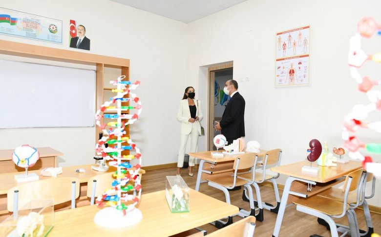 Mehriban Əliyeva Binədə yeni inşa edilən məktəbdə yaradılan şəraitlə tanış olub - Fotolar