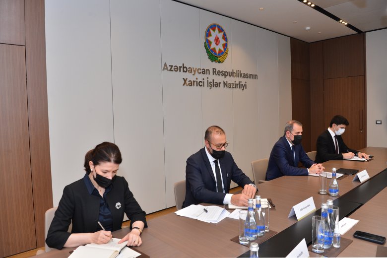 Xarici İşlər Nazirliyinin məlumatına görə, görüşdə nazir Ceyhun Bayramov Azərbaycan ərazilərinin bir hissəsinin 30 ilə yaxın davam edən işğalı və onun ağır nəticələrindən bəhs edib. Ötən il ərzilərimizin hərbi-siyasi yolla azad edildiyini qeyd edən nazir, əsas diqqəti Ermənistanın ərazilərimizin məqsədyönlü şəkildə minalarla çirkləndirilməsi siyasətinə yönəldib və azad olunmuş ərazilərdə insan həyatına hədə törədən mina təhlükəsindən danışıb. 10 noyabr 2020-ci il tarixli üçtərəfli bəyanatın imzalanmasından sonra, əvvəlcə ümumiyyətlə mina xəritələrinin olmasını inkar edən Ermənistanın daha sonradan təqdim etdiyi kiçik qism mina xəritələrinin Etibarlılığının yalnız 25 % təşkil etdiyini qarşı tərəfin diqqətinə çatdırıb. Bu günədək 167 vətəndaşımızın mina partlayışından zərər çəkdiyi, onlardan 33 nəfərin həlak olduğu qeyd edilib, həlak olanlar arasında 2 nəfər jurnalistin olduğu vurğulanıb.