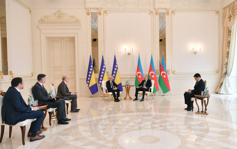 - Xoş gəlmisiniz, cənab Prezident. Sizi yenidən görməyə çox şadam. Çox şadam ki, VIII Qlobal Forumda iştirak edirsiniz. Biz dəfələrlə görüşmüşük. Həmçinin bu yaxınlarda telefonla tərəfdaşlığımız, əməkdaşlığımız və millətlərimiz arasında sıx dostluq əlaqələri barədə danışmışıq. Ölkələrimiz hər zaman bütün məsələlərdə bir-birini dəstəkləyib. Bu qarşılıqlı dəstək tərəfdaşlığımızı çox xüsusi edir. Mən Azərbaycanın ötən il torpaqlarının azad edilməsi uğrunda apardığı müharibə zamanı dəstəyinizə görə şəxsən Sizə çox minnətdaram. Ölkələrimiz arasında çoxlu oxşarlıqlar var və xalqlarımız bir-birini daha yaxşı tanıyır. Demək olar 50 ildir ki, Bakı və Sarayevo qardaşlaşmış şəhərlərdir. Sözsüz, bu elə bir vaxt idi ki, ölkələrimiz müstəqil deyildilər. Lakin biz müstəqillik illərində bu sıx əməkdaşlığı davam etdiririk. Əminəm ki, Sizin səfəriniz siyasi, iqtisadi və digər sahələrdə əməkdaşlığımızla bağlı müxtəlif məsələləri müzakirə etmək üçün yaxşı fürsət olacaq. Bir daha xoş gəlmisiniz.