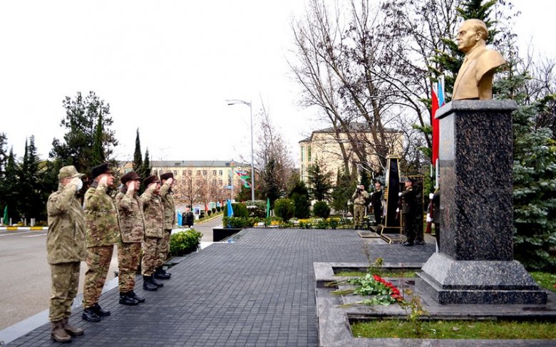 Əvvəlcə ümummilli lider Heydər Əliyevin hərbi hissənin ərazisindəki büstü və şəhidlərimizin abidəsi önünə əklil qoyularaq xatirələri hörmət və ehtiramla anılıb.