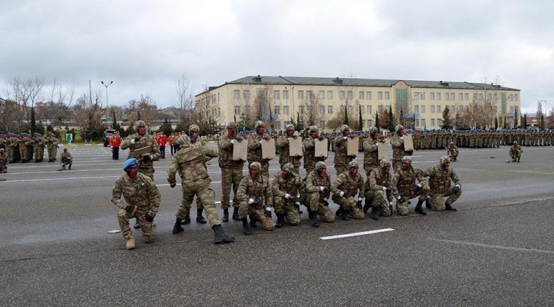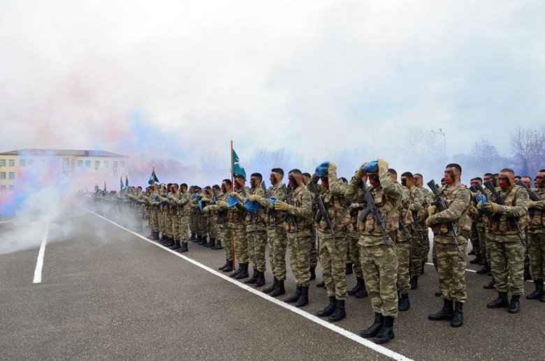 “Komando hazırlığı” kursunu müvəffəqiyyətlə bitirənlərə beretlər təqdim olunduqdan sonra şəxsi heyət “Komando andı”nı qəbul edib.