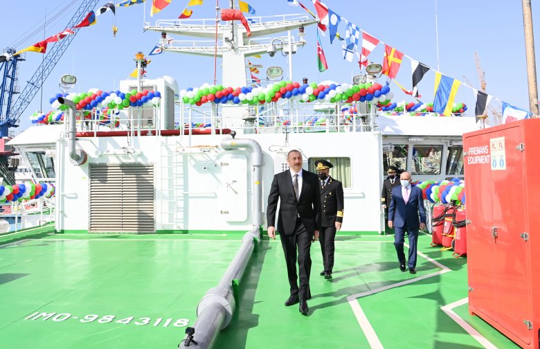 Prezident gəmi-bərəsinin istismara verilməsi mərasimində iştirak edib - Fotolar (Yenilənib)