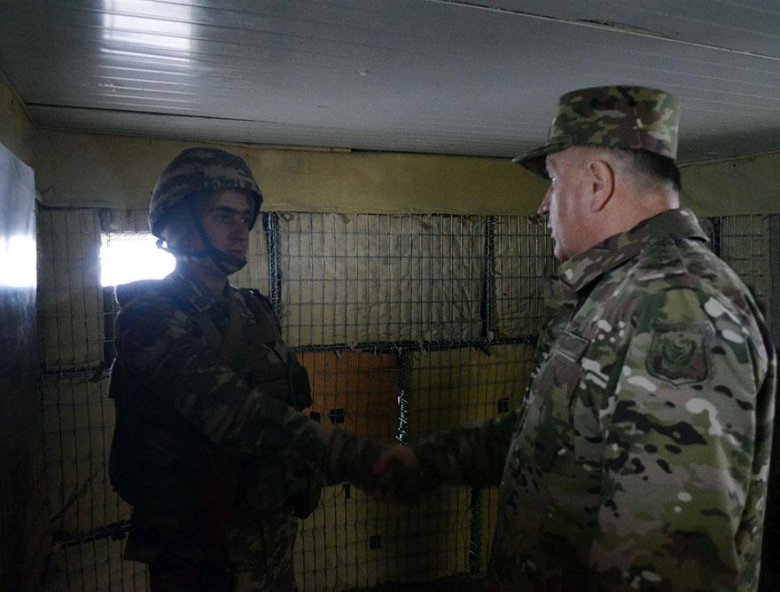 General-polkovnik K.Vəliyev dövlət sərhədinin Kəlbəcər rayonu sahəsində döyüş növbətçiliyi aparan şəxsi heyətlə görüşərək onun qayğıları ilə maraqlanıb, xidmətdə fərqlənən hərbi qulluqçuları mükafatlandırıb, gələcək xidmətlərində uğurlar arzulayıb.