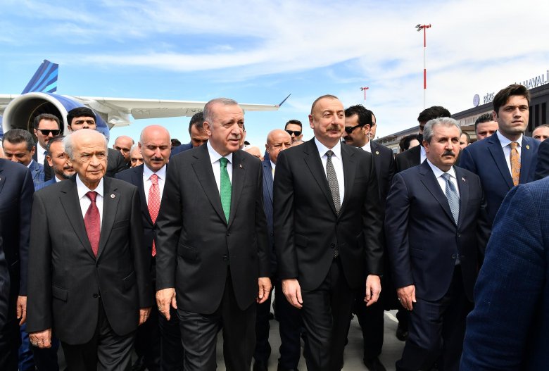 Bu hava limanının açılışı Türkiyədə gedən çox xoş və uğurlu inkişafın təzahürüdür. Qardaş Türkiyə gündən-günə güclənir, sürətlə inkişaf edir. Bütün bunun təməlində aparılan siyasət, əziz qardaşımın böyük əməyi, zəhməti vardır. Türkiyə bu gün nəinki dünya miqyasında böyük güc mərkəzinə çevrilib, söz sahibi olub, eyni zamanda, ölkə içində də böyük layihələr icra etməyə qadirdir. Bunların arasında xüsusilə insanlara xidmət göstərən layihələri qeyd etmək istərdim. Hava limanları, su anbarları, yollar, körpülər, məktəblər, xəstəxanalar – bütün bunlar Türkiyənin inkişafını, gücünü göstərən amillərdir və bütün bu işlərin mərkəzində insan amili dayanır, dövlət siyasəti dayanır.