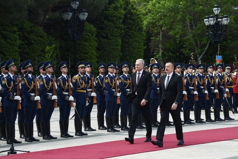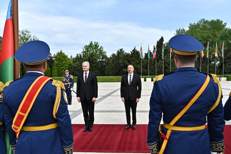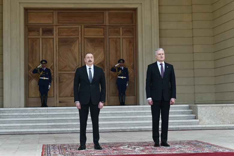 Reyting.az xəbər verir ki, hər iki ölkənin dövlət bayraqlarının dalğalandığı meydanda Litva Respublikasının Prezidentinin şərəfinə fəxri qarovul dəstəsi düzülüb.