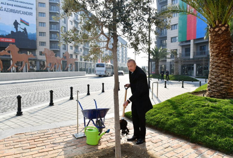 Prezident İlham Əliyev Qarabağ Atları Meydanına gələrək burada ağac əkib.
