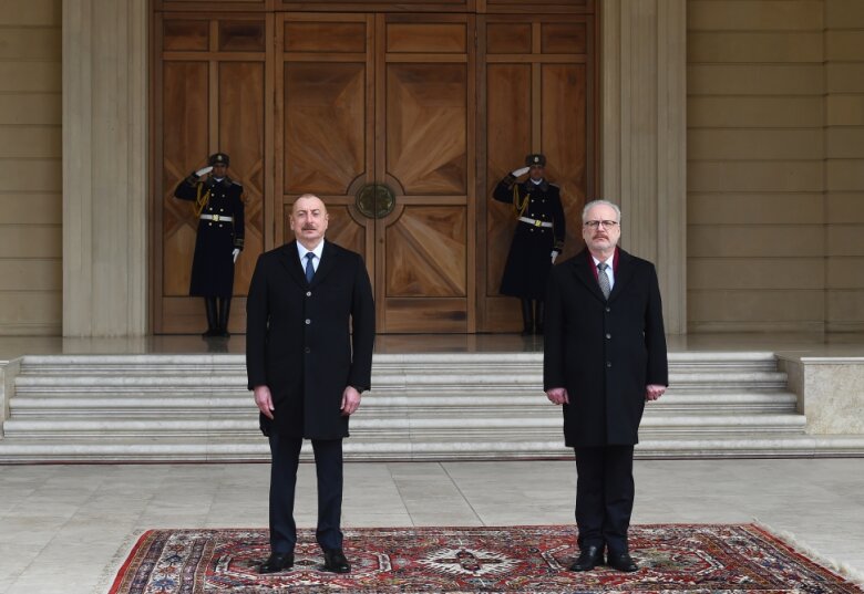 Azərbaycan Respublikasının Prezidenti İlham Əliyev Latviya Respublikasının Prezidenti Egils Levitsi qarşılayıb.