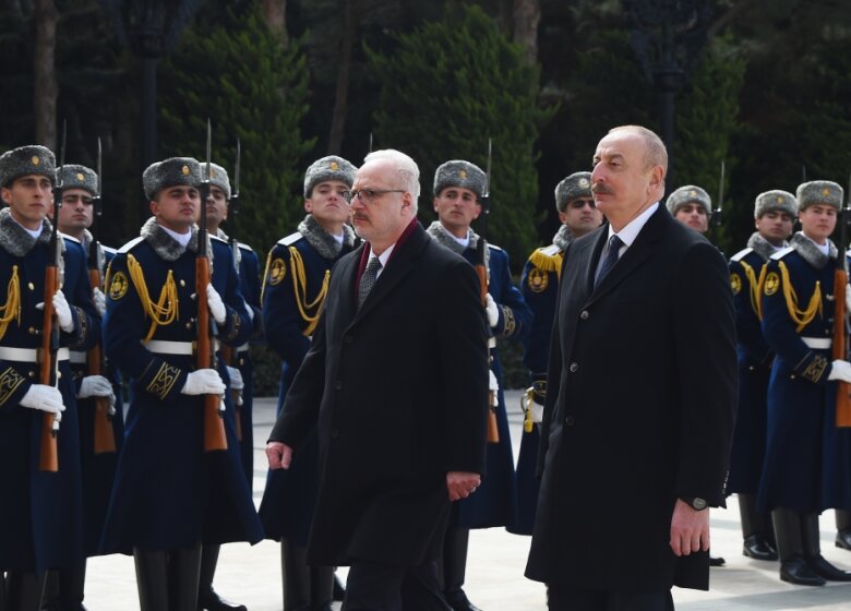 Latviya prezidenti Egils Levitsin rəsmi qarşılanma mərasimi olub