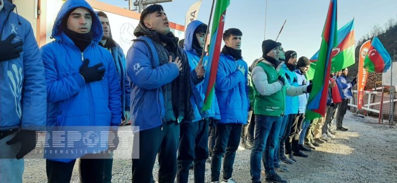 Eyni zamanda ekofəallar yolun hər iki tərəfində, hərəkətə maneə törətmədən üzərində Azərbaycan, rus və ingilis dillərində yazılmış plakatlar qaldırıb, şüarlar səsləndirirlər.